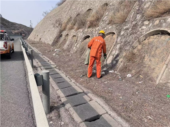 保阜公司阜平东养护工区开展沿线白色垃圾专项清理行动