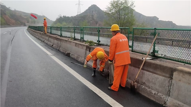 二是应急处置突出“准”,高效化解通行隐患。强降雨导致辖区部分路段出现短时积水,严重影响车辆通行;大风天气造成多处防眩网松动、移位,存在车辆剐蹭安全隐患。针对各类隐患,养护人员冒雨逆行、分片作业,精准施策开展处置:对积水路段,迅速清理排水口杂物、疏通排水管道,加快积水排出,同步设置警示标志,引导车辆减速慢行;对松动的防眩网,采取“发现一处、加固一处、验收一处”的原则,利用铁丝、螺栓等工具逐一紧固,全力消除安全隐患,确保道路通行条件持续改善。